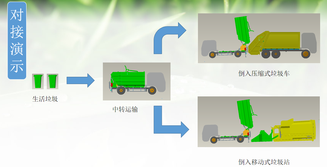 無泄漏壓縮式垃圾車中轉(zhuǎn)與垃圾站對接工作圖