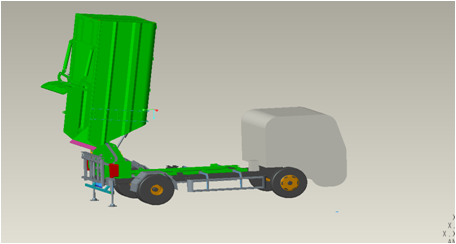 4.舉升箱體,進行卸料。采用高位舉升自卸結(jié)構(gòu),操作方便實用。可直接卸料、與壓縮式垃圾車對接、與移動式壓縮箱進行對接卸料。車輛尾部裝有液壓支腿,保證卸料作業(yè)的平穩(wěn)性與安全性。