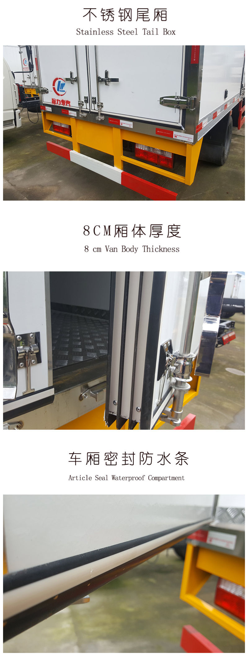 二、廂體配置:采用我公司液壓吸附一體成型生產線制造,保溫性能達到**A級標準廂體內部尺寸為:5130X2100X2100(mm)容積為22.6立方, 廂體內外面料采用**新款納米玻璃鋼(不吸光、隔熱性好、硬度強、抗氧化),廂體厚度為8cm,內襯骨架為防銹處理武鋼優(yōu)質輕鋼型材,保溫材料為無空隙填充聚氨酯發(fā)泡,廂體底部為鋁合金花紋板或選平面納米玻璃鋼,廂體采用鍍鋅不銹鋼包角,加厚型鋁合金包邊,后門框為不銹鋼,加厚型不銹鋼后門合頁及鎖件,廂體內部采用LED照明燈及廂體示寬燈。