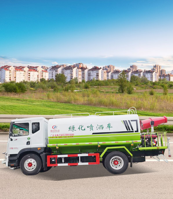 程力多功能灑水車功能:園林綠化澆灌樹木、路面及高空建筑沖洗,飲用水及熱水運輸,噴霧降塵增濕,應急消防滅火,噴灑消毒劑預防疾病等,以達到美化環境的作用。