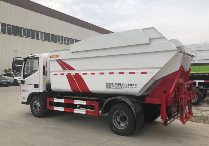 5方福田奧鈴無泄漏自卸式垃圾車上裝說明: 整個箱體是個船型的料斗,連接部位滿焊,無任何封門,不需密封膠等,完全杜絕了運輸“滴水漏料”現象。箱體可以選用不銹鋼材質或者做內防腐處理。上裝輕量化設計,刮板壓縮,高位卸料,可與其它設備對接,壓縮垃圾站和其它車輛配合工作可提高工作效率,降低運營成本,垃圾分類的好幫手。