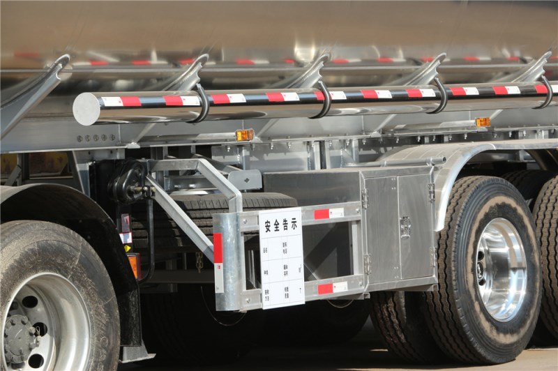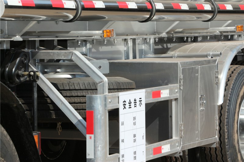 | 采用適用于牽引危險(xiǎn)品運(yùn)輸半掛車的牽引車。危險(xiǎn)貨物運(yùn)輸車輛的類型(FL型車輛)。類項(xiàng)號:3, 罐體有效容積:47.6立方米, 該車為三軸鵝頸式半掛車:罐體外形尺寸(mm):長×長軸×短軸(前端/后端)為:11900×2480×1930/2130。可選裝擋泥板樣式, 前爬梯; 車輛顏色可選, 文字噴涂位置可變化。防護(hù)材料:Q23**碳鋼, 連接方式:左右側(cè)面及后下部防護(hù)均采用焊接連接, 后部防護(hù)斷面尺寸(mm):140×50, 后部防護(hù)離地高度(mm):530。ABS生產(chǎn)廠家/型號:廣州市科密汽車制動技術(shù)開發(fā)有限公司/CM2XL-4S/2K(4S/2M), 梁山順安達(dá)汽車科技有限公司/SAD-ABS4S/2M, 梁山海納電子科技發(fā)展有限公司/HNABS-4S/2M。 |