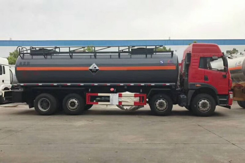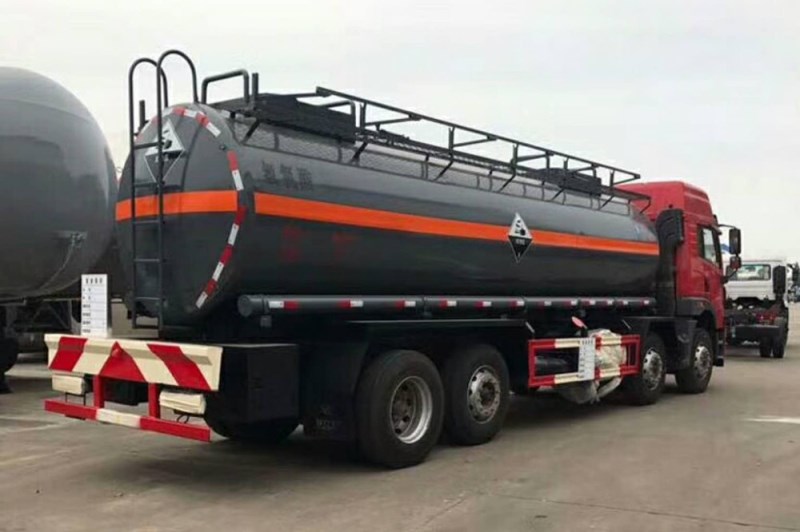 | 其他 | 該車適用于運輸危險品。運輸介質(zhì)品名:次氯酸鈉,液堿,氫氯酸,硫酸,氨水,密度分別為:1050千克/立方米,1040千克/立方米,1047千克/立方米,1045千克/立方米,990千克/立方米;類項號:8;罐體有效容積:18.1立方米; 罐體外形尺寸(長×徑)(mm)為:8200×Φ1800。防護材料:Q23**碳鋼,連接方式:左右側(cè)面及后部防護均采用焊接連接,后部防護斷面尺(mm):120×50, 后部防護離地高度(mm):520。僅采用底盤子午線輪胎和帶ABS的底盤,該車前輪安裝盤式制動器,前置排氣管 | ||