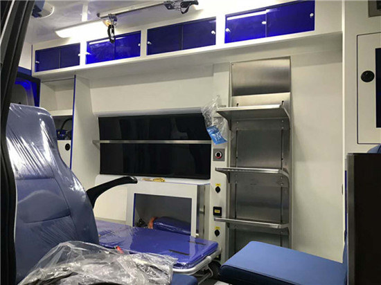 【參考配置】 救護(hù)系統(tǒng): 自動上車擔(dān)架;輸液瓶夾持器;供氧系統(tǒng)(氧氣瓶、氧氣接口終端、氧氣吸入器、減壓閥、氧氣管路)。 內(nèi)飾及櫥柜系統(tǒng) 采用輕型環(huán)保材料,具有防水、防腐、易洗等特點(diǎn),內(nèi)部邊角采用圓弧過渡、避免人員碰傷。 **示及照明系統(tǒng): 長排**燈**報器總成、方形暴閃燈、LED藍(lán)色閃燈、橢圓形射燈;內(nèi)部照明、外部照明、紫外線消毒燈。 電器及供電系統(tǒng): 對講機(jī)系統(tǒng)、多功能換氣扇、逆變器、倒車視頻、全自動充電機(jī)、外接電源系統(tǒng)。 選擇配置: 可選裝負(fù)壓裝置、吸引器、呼吸機(jī)、除顫監(jiān)護(hù)儀、自動上車擔(dān)架等。