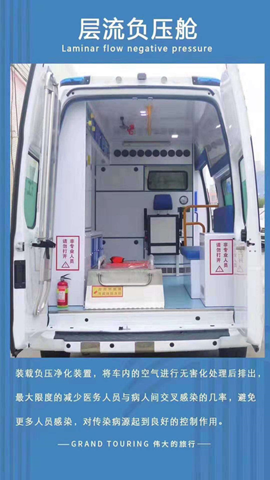 負(fù)壓救護(hù)車是在原監(jiān)護(hù)型救護(hù)車的基礎(chǔ)上加裝了負(fù)壓、過(guò)濾、消毒系統(tǒng)。