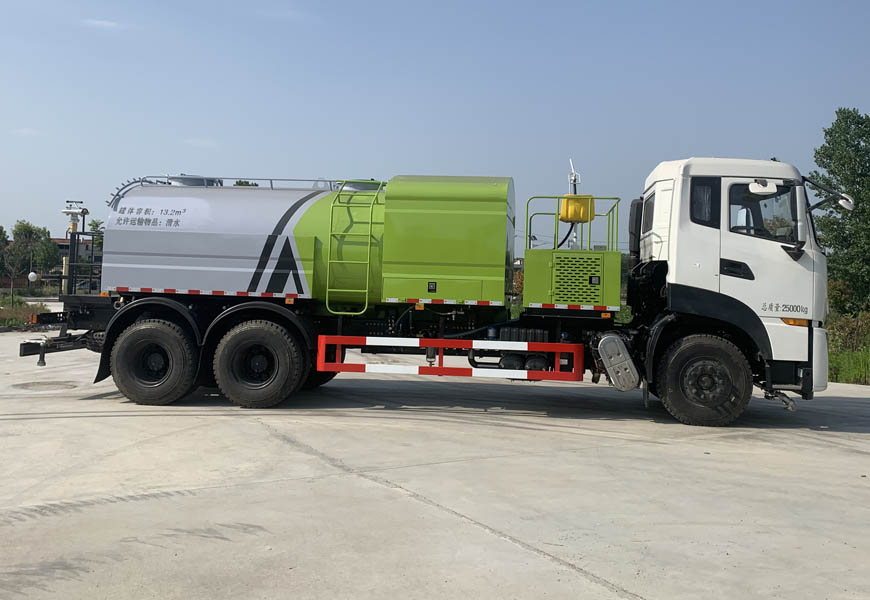 高壓水泵由副發(fā)動機→傳動軸→皮帶傳動→電磁離合器→聯(lián)軸器驅(qū)動;低壓水路系統(tǒng),采用雙級葉輪離心泵,效率高、灑水寬度大、水**射程遠,低壓水泵由底盤變速器取力器通過傳動軸直接傳動。